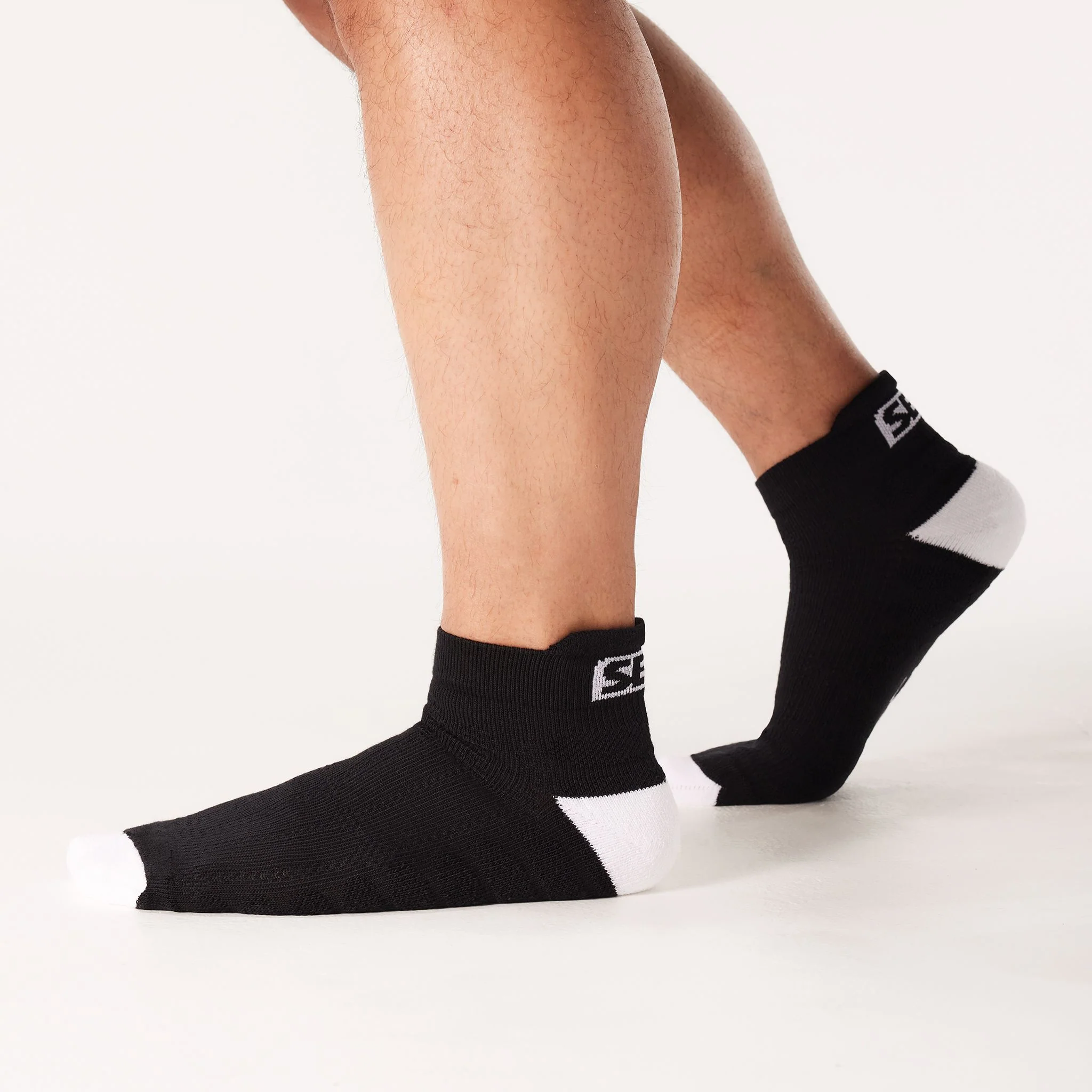 SBD Momentum Trainer Socks are premium trainer socks for training and day-to-day wear. Features the SBD logo on the back of the ankle. Black and white design.
